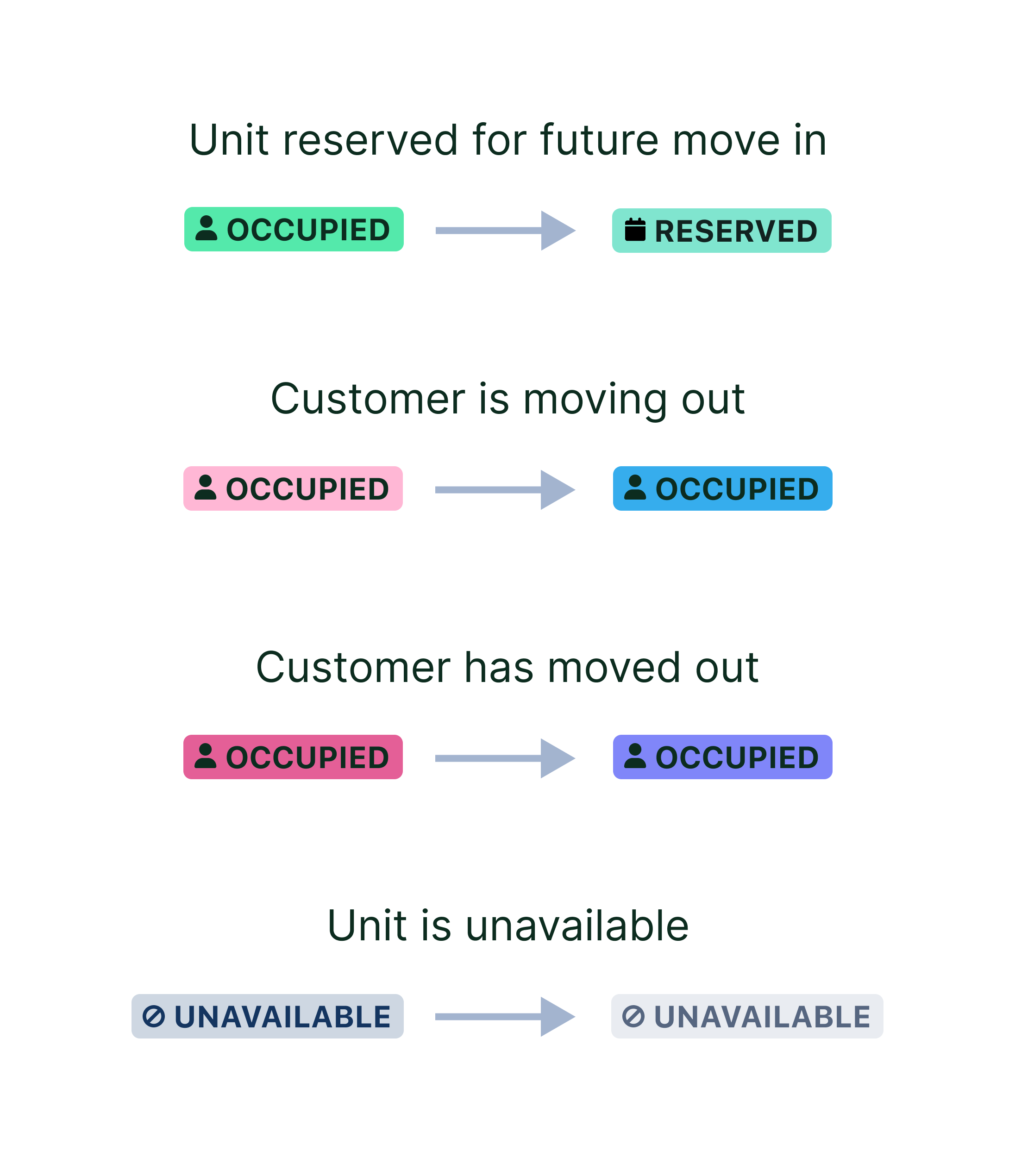 Things work much like they do today. You will still allocate using the same actions as you do today and the customer gets notified only on their move-in day. The main difference you’ll notice will be in your future data, as reserved units will not count towards your occupancy data until the subscription has begun.