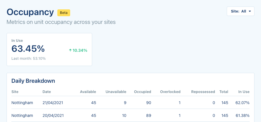 We've introduced a new Occupancy page, which gives you a high-level overview of how many of your units are currently in use, and a daily breakdown with more data to help you track progress overtime. We want to add a lot more to this, but decided to release it early so you can try it out so far. Any feedback or requests let us know!