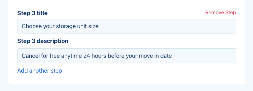 To do so visit your Homepage edit form, you can then change the text of each Getting Started step, and add or remove additional steps to create your own custom description of your customer's book and move in.