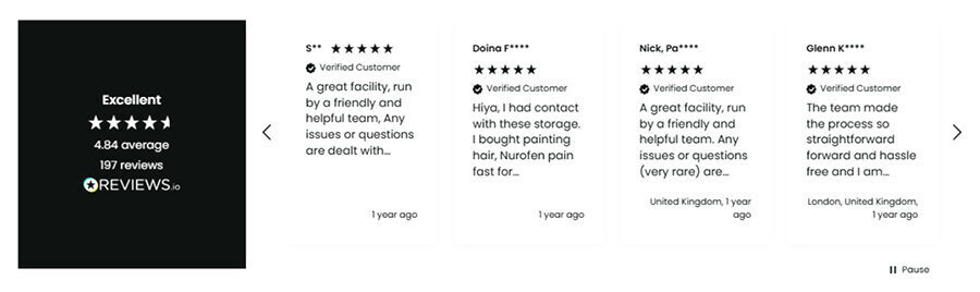 Stora customer Standby Self Storage does this. It proudly displays its positive reviews using a carousel on its homepage.